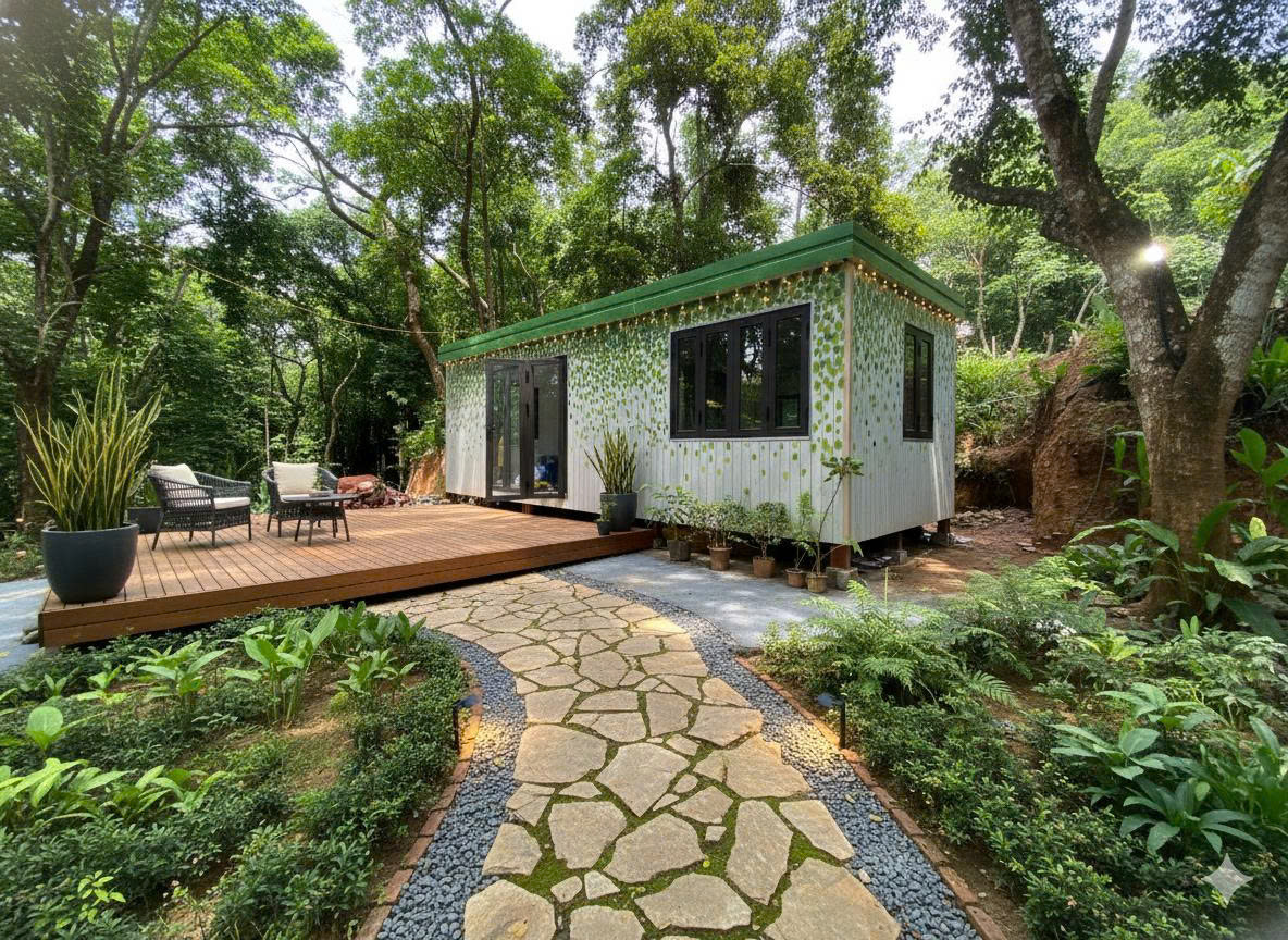 Thời gian sản xuất và thi công nhanh chóng chỉ mất 1 tháng là ngôi nhà đã hoàn thiện và đem vào sử dụng. Hệ móng ngôi nhà được xây dựng và thi công rất đơn giản, chỉ cần làm các trụ bệ tông rồi đặt nhà lên là xong.